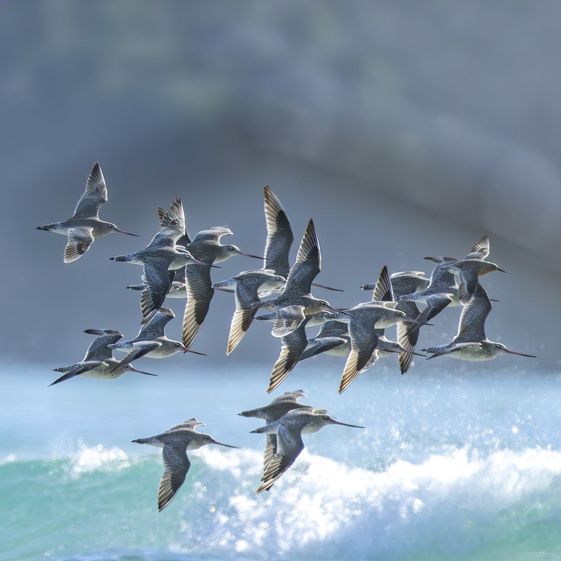 Bar-tailed godwits, Pilitika / Robbins IslandBar-tailed godwits have been tracked flying 13,500km in 11 days, from Alaska to Tasmnania!Available on paper or canvas:- Printed with...
